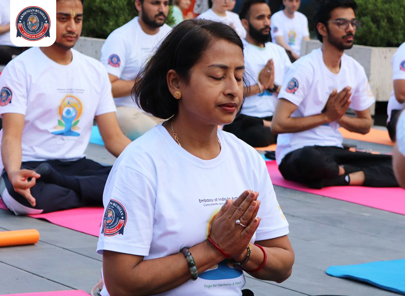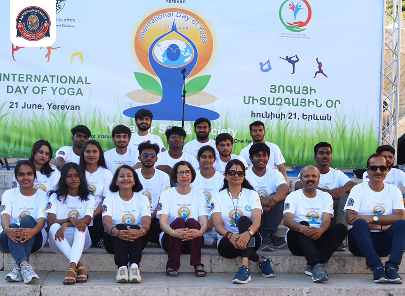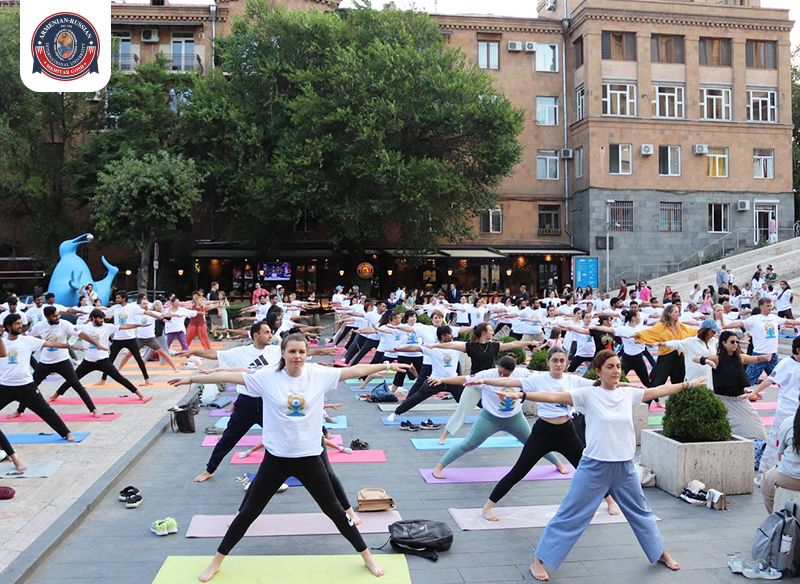 Լուսանկարներ յոգայի սեանսներից և համալսարանի առողջարար մթնոլորտից։